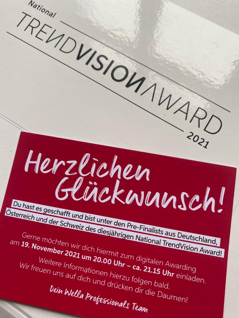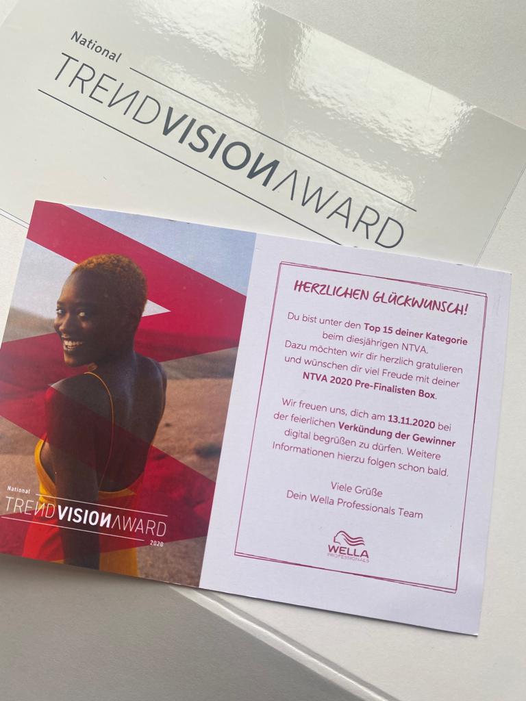 Beim National TrendVision Award (NTVA) konnten wir die Wella Jury überzeugen und in die Top15 Pre-Finalisten der Kategorien IlluminageExpert (2020) und ColorSpecialist (2021 und 2022) einziehen.